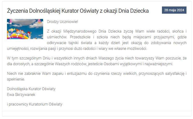 Do życzeń dołączają: Miniter Edukacji i Nauki- Barbara Nowacka, Dolnośląski Kurator Oświaty, Ewa Skrzywanek
