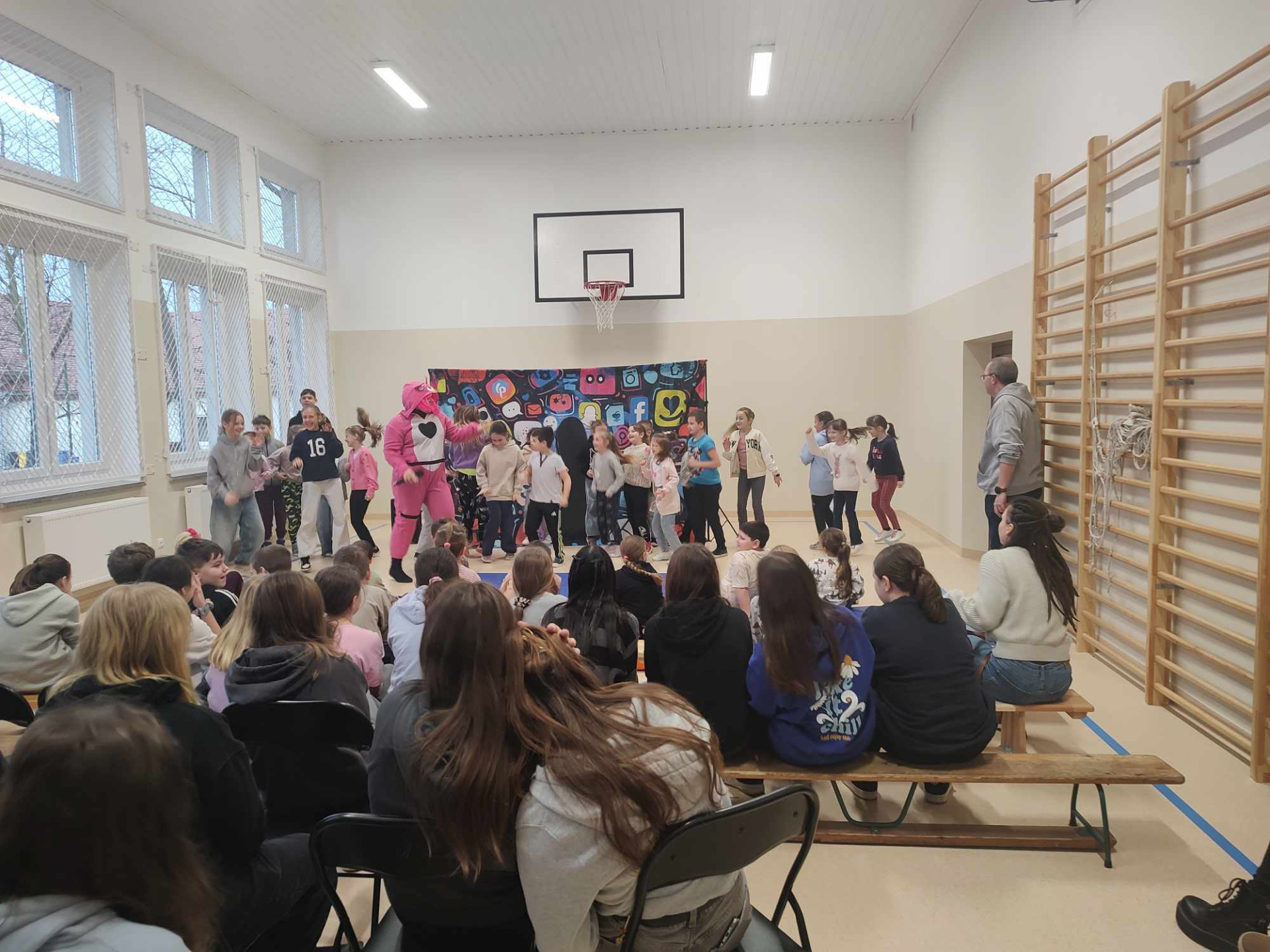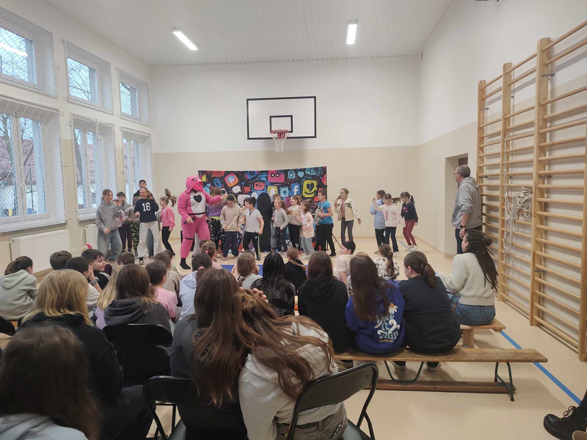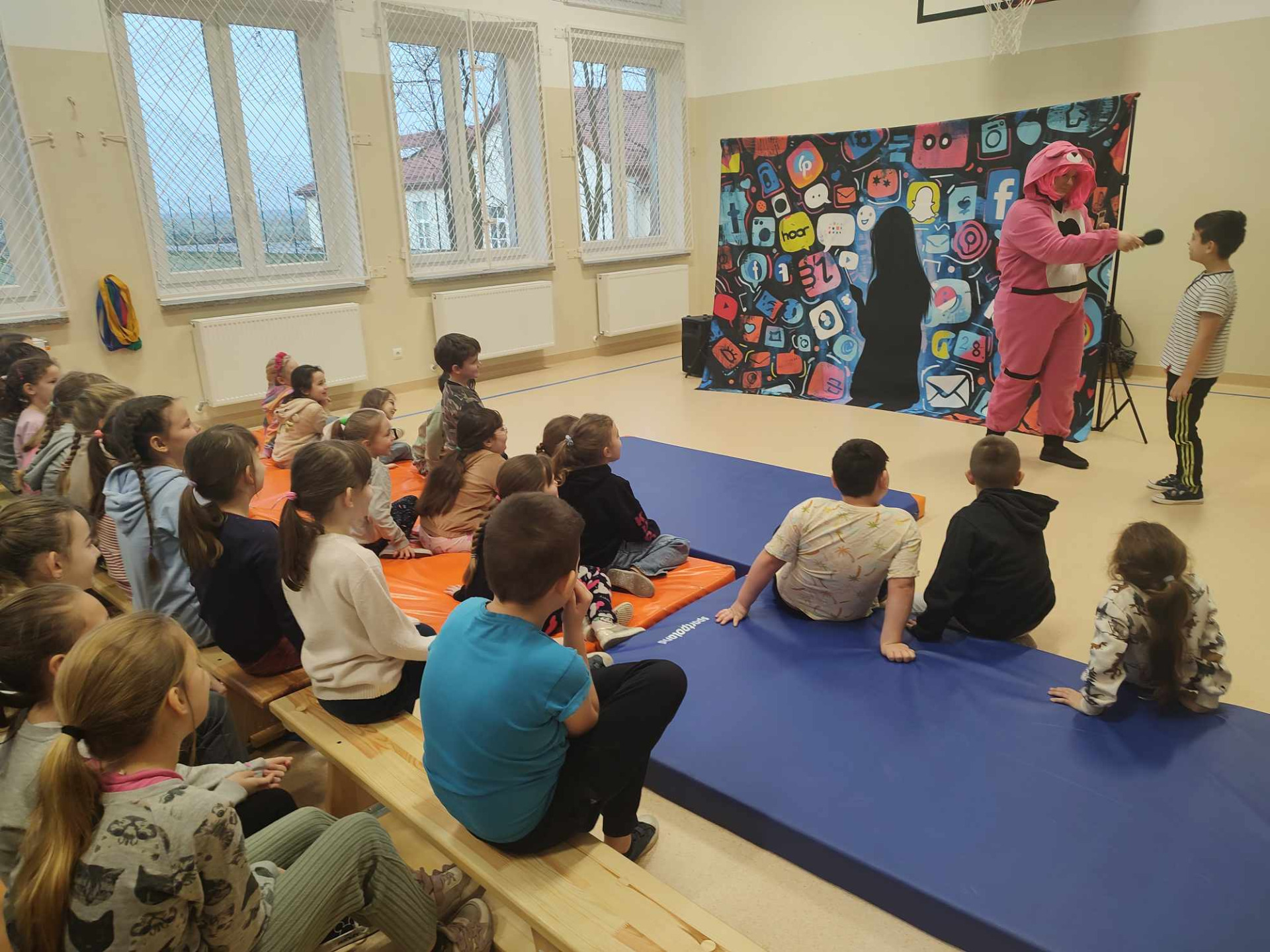 21.01.2025 uczniowie naszej szkoły obejrzeli przedstawienie na temat uzależnień behawioralnych, zagrożeń internetowych, fejku, promowania zdrowego stylu życia. Współczesne dzieci mnóstwo czasu spędzają przed ekranami, dlatego tak ważne jest, aby jak najczęściej tłumaczyć im jakie niebezpieczeństwa czyhają w Internecie.