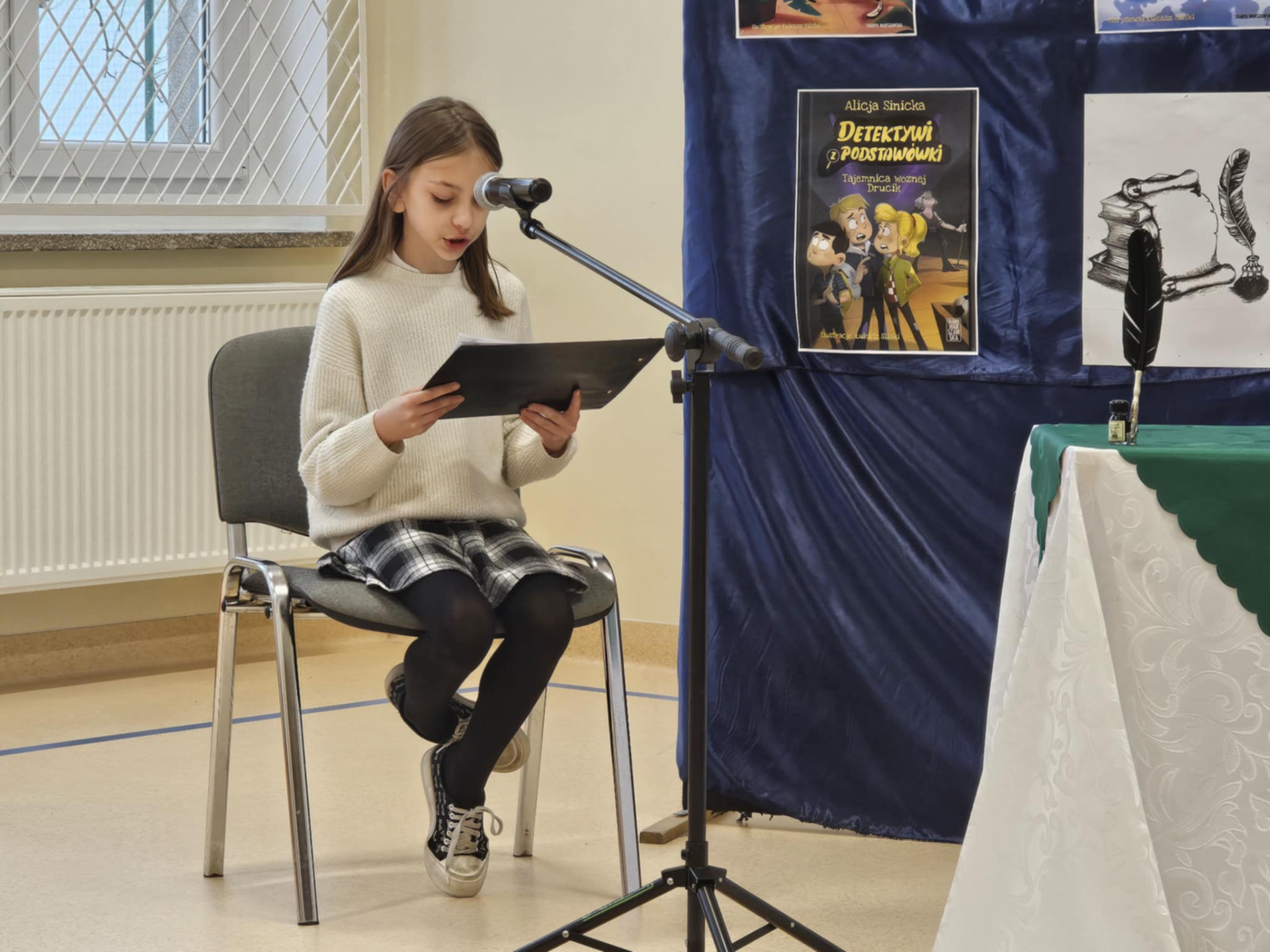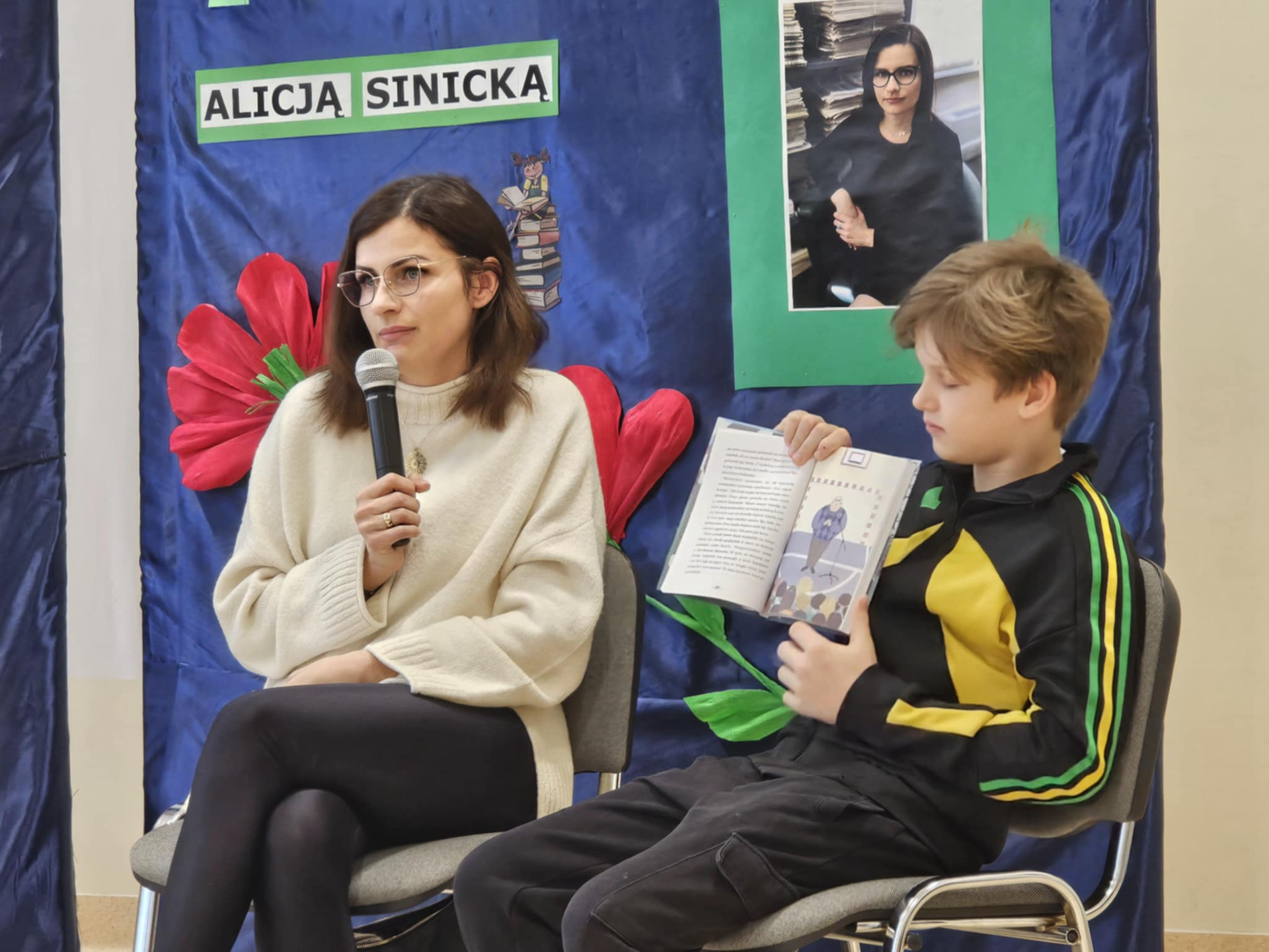 Dziś uczniowie naszej szkoły wzięli udział w spotkaniu autorskim z Panią Alicją Sinicką. Pisarka przyjechała do szkoły wraz ze swoim synem Oskarem, który wraz z mamą odpowiadal na liczne pytania uczniów.