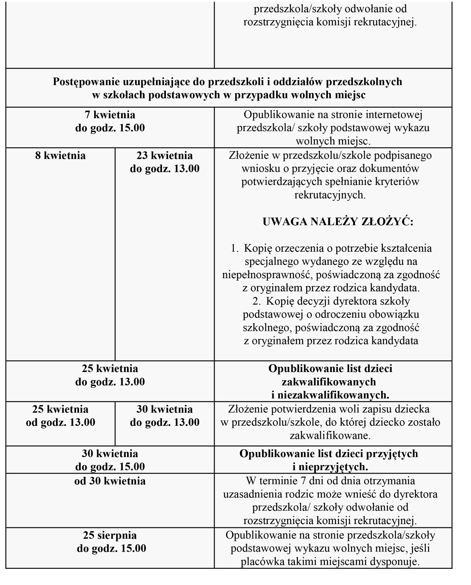 wnioski w sekretariacie i w przedszkolu, budynek szkoły, sala nr 8