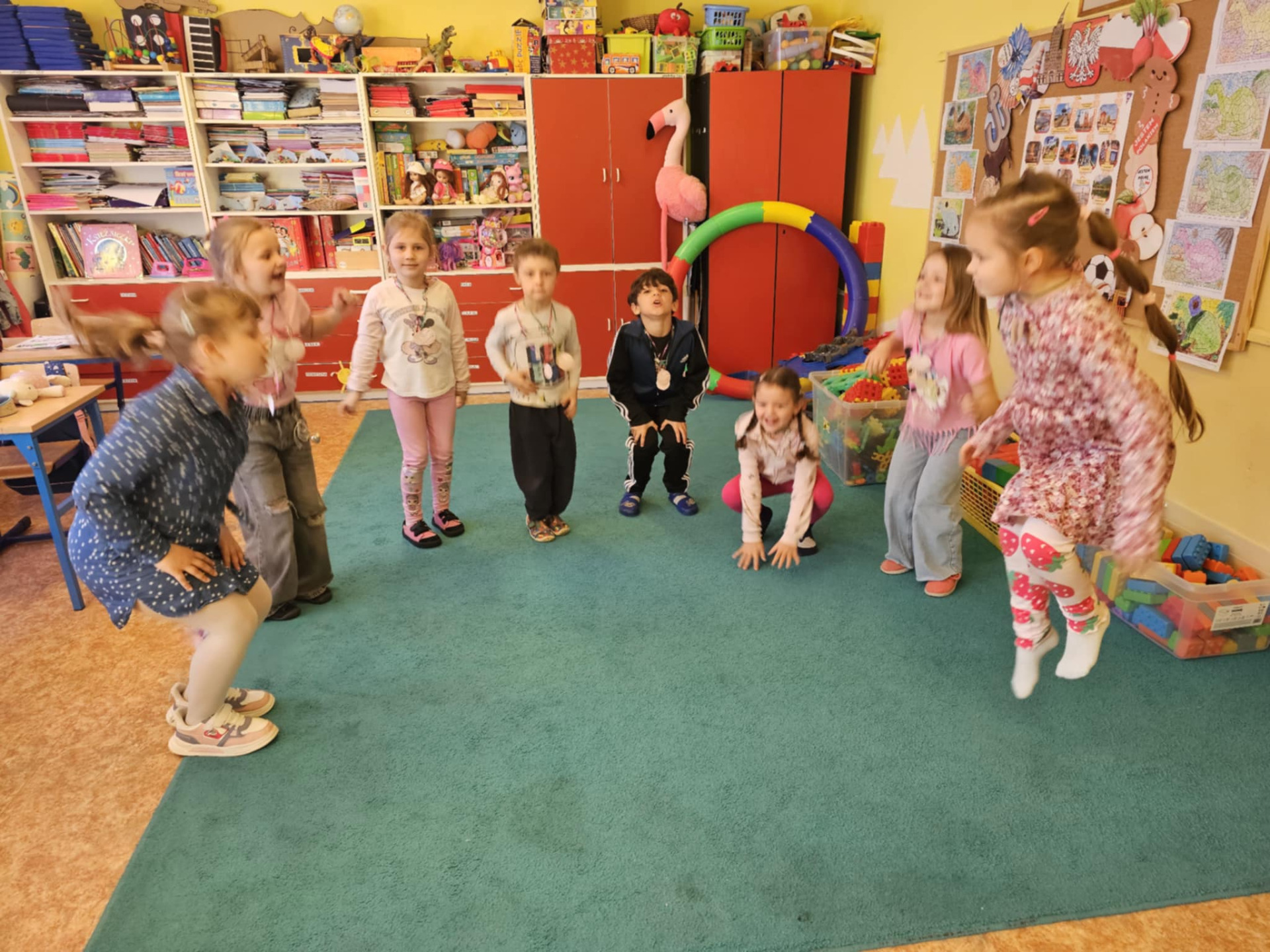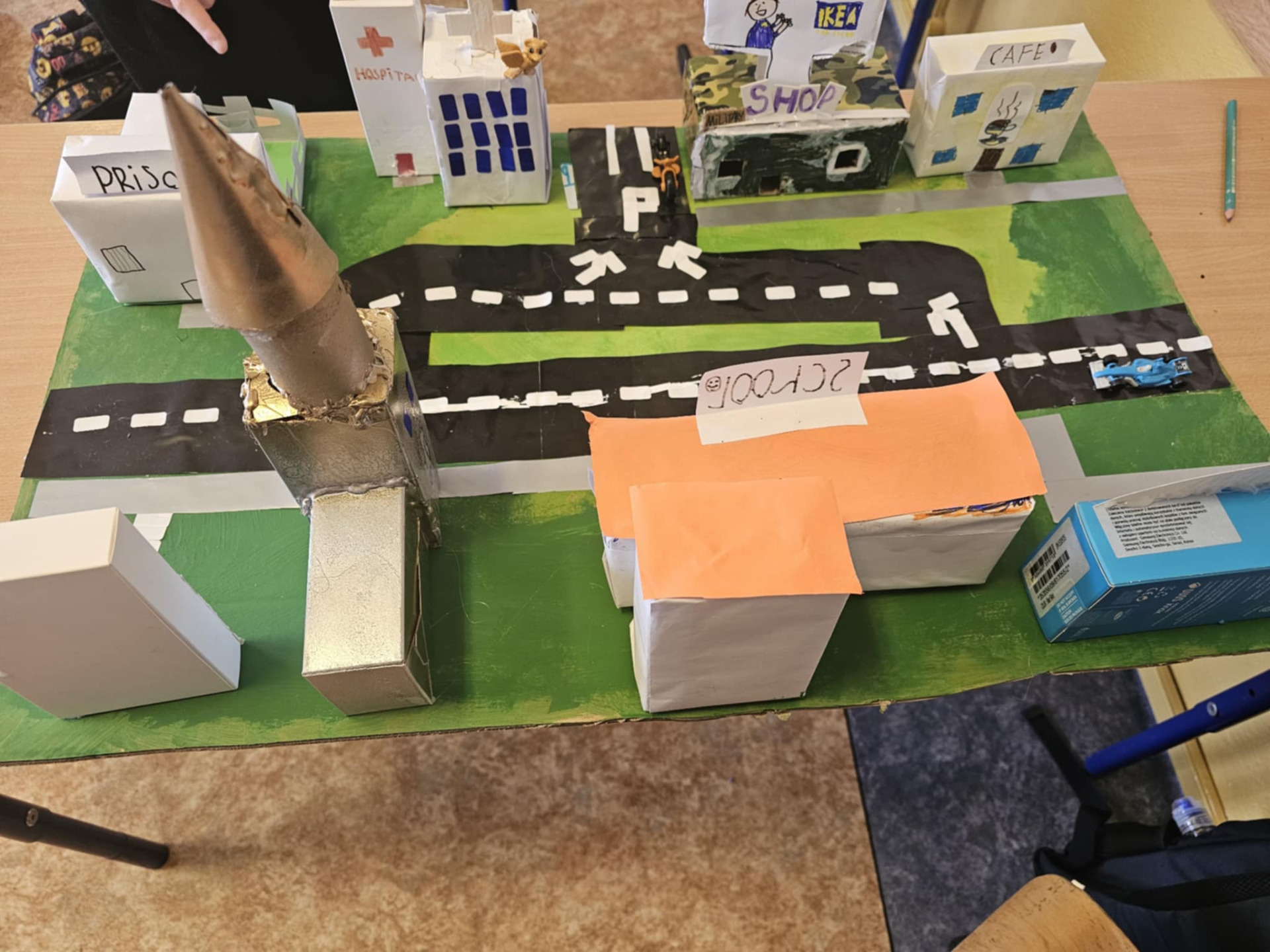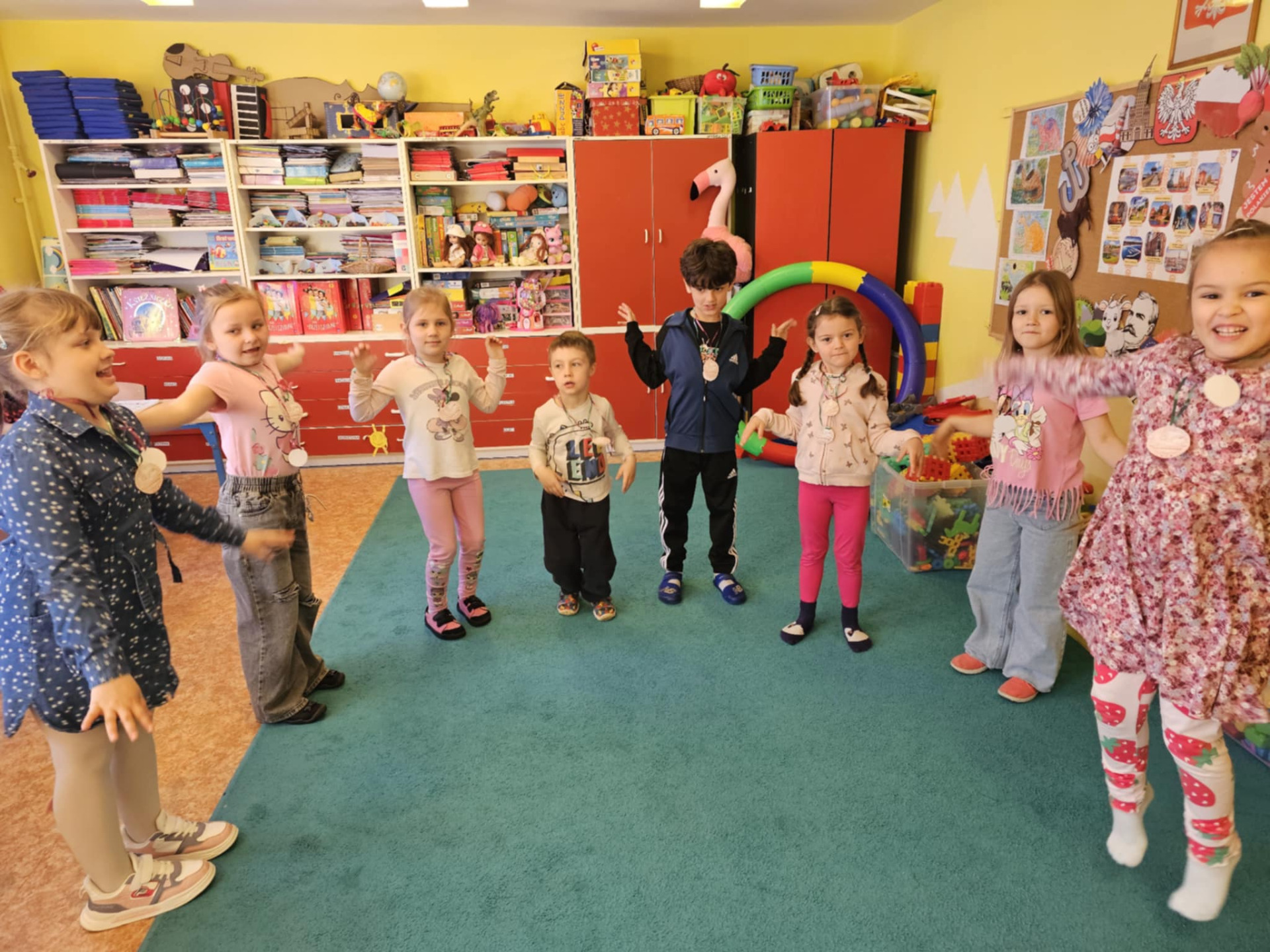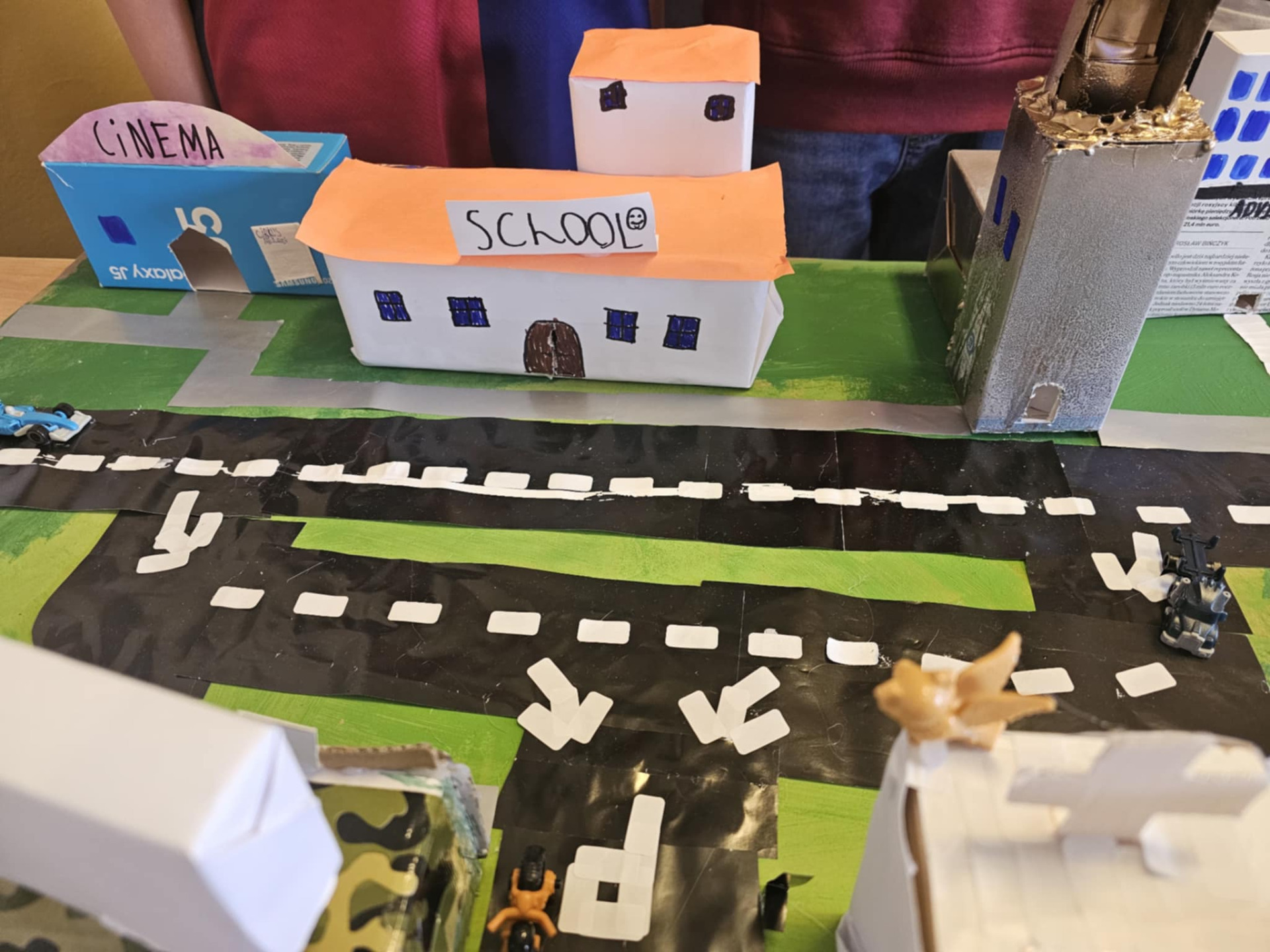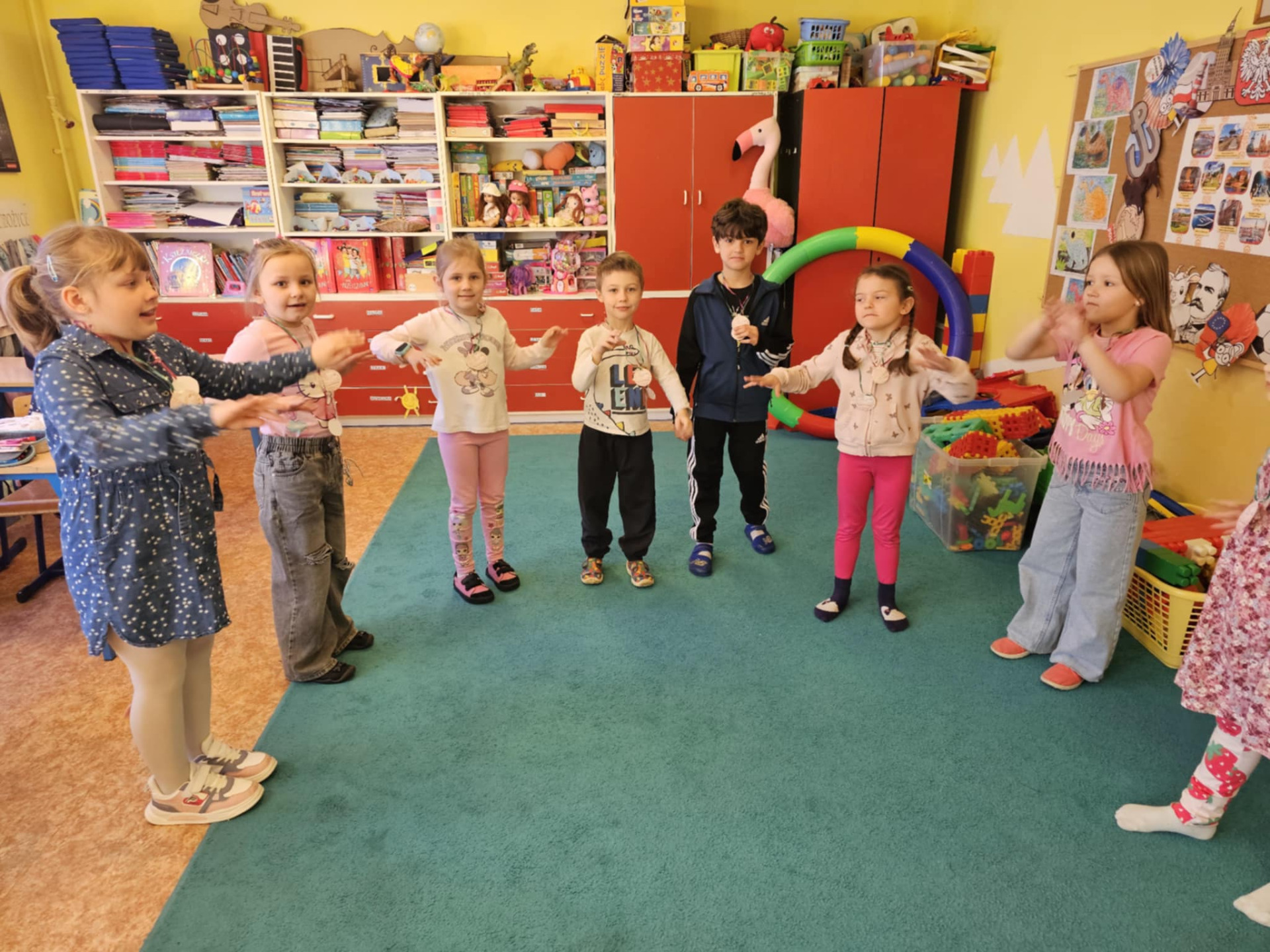 Pomysłowość naszych uczniów jest imponująca. Dzieci z klasy 0 oraz III nietypowo utrwalały poznane słownictwo i zwroty. Zerówka powtarzała wyrażenia związane ze sportem prezentując to, co potrafią robić w ruchu i za to wszyscy otrzymali złote medale. Trzecioklasiści zaś po opanowaniu leksyki dotyczącej miasta, a zwłaszcza budynków, przygotowali ciekawe makiety, które możemy podziwiać tu, na zdjęciach. Brawo uczniowie!