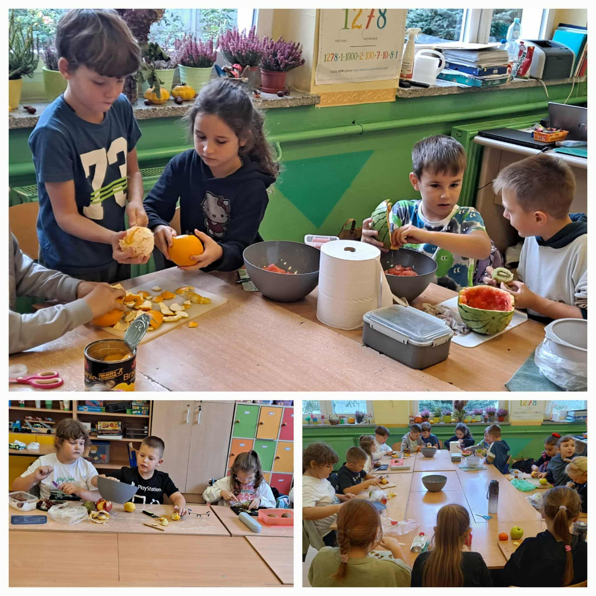 Klasa II dużo wie o zdrowym odżywianiu. W piątek wybraliśmy się z teatrzykiem ,,Na straganie" do naszych kolegów z NZWP i klas 0-3. Następnie dzieci wykonały sałatkę owocową. Zajęcia praktyczne najlepiej aktywizują zmysły dzieci i sprawiają wiele radości. S.P