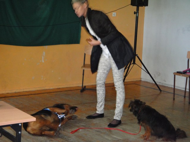 7 czerwca 2013r. na zaproszenie p.K.Szyszki, w naszej szkole gościła p. Marta Aksman - lekarz weterynarii i opienkunka oławskiego schroniska dla zwierząt. Razem z nią przyjechali jej podopieczni - psy: Lenka i Miki.